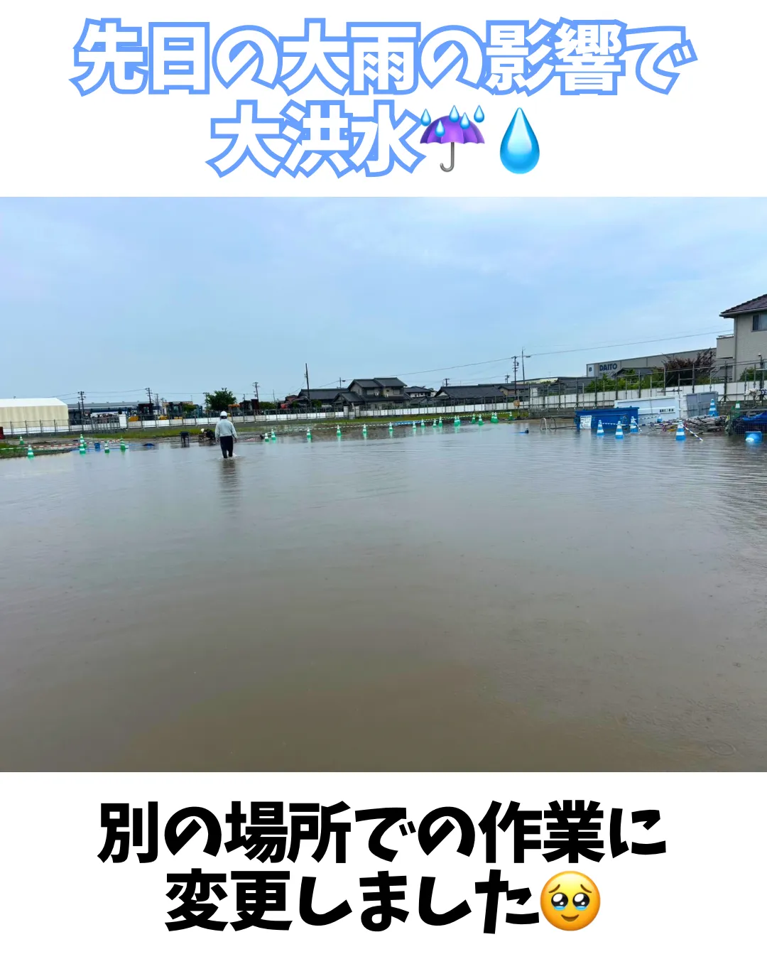 前日の大雨の影響で現場が大洪水☔️💧