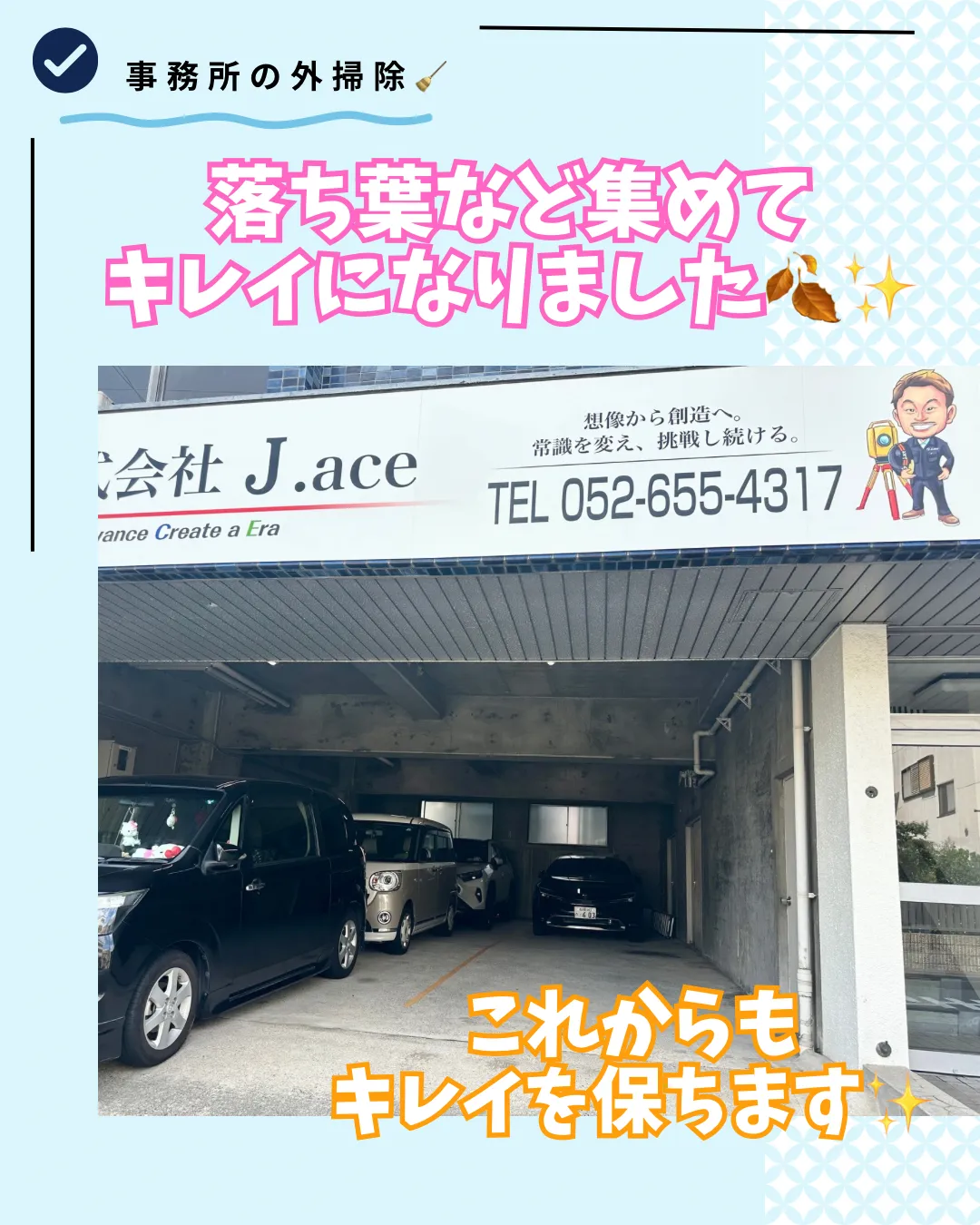 落ち葉やゴミを拾って歩道や駐車スペースもスッキリ✨