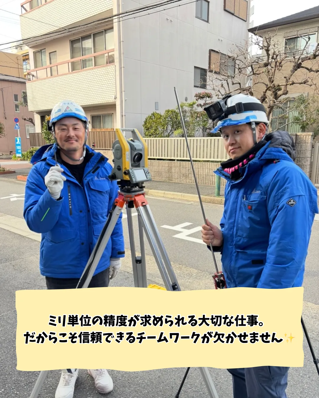 測量の仕事は、ミリ単位の精度が求められる大切な仕事です。