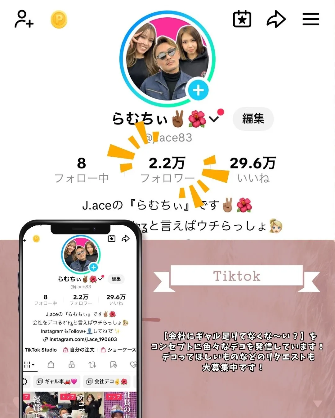 TikTokのフォロワーも2.2万人を突破しました〜!!!🎉✨