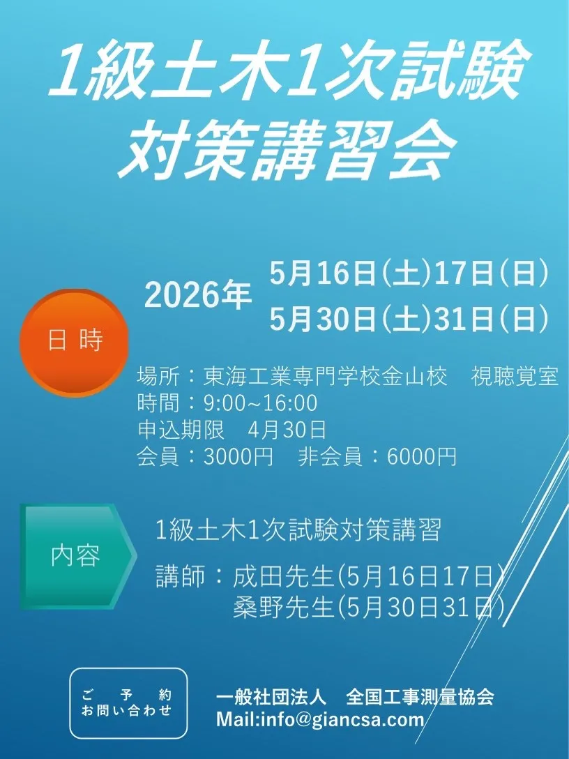 1級土木施工管理技士(第一次検定) 試験対策講習会のご案内🌟