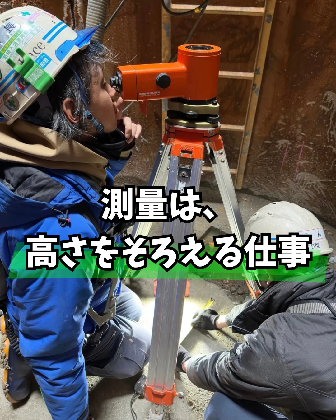 測量は、建物をまっすぐ立たせるだけじゃなく、
